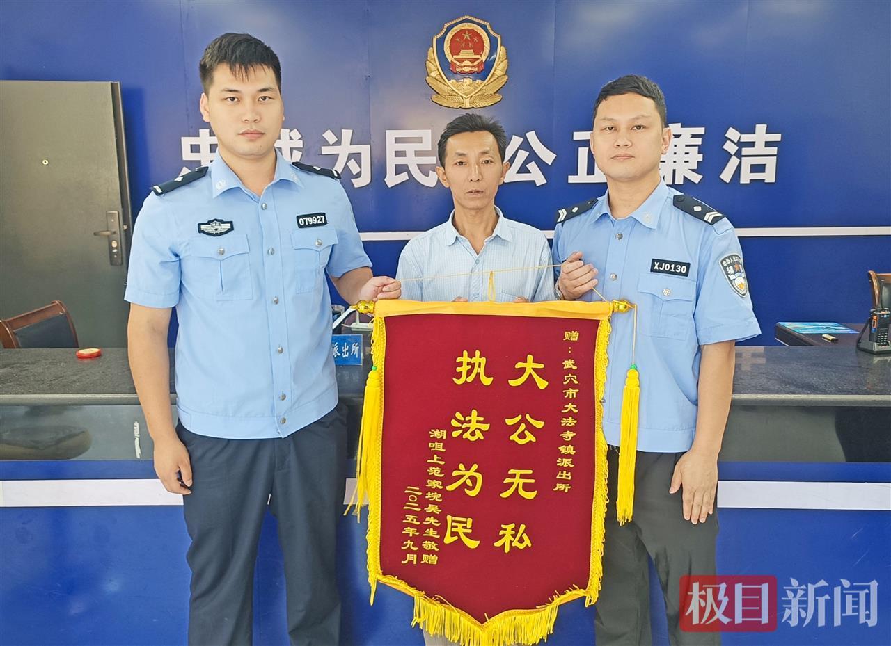 “太感谢你们了,短短几天就抓到了肇事者,还了我们一个公道!”10月9日上午,当事人家属吴先生将一面印着“大公无私,执法为民”的锦旗送到武穴市公安局大法寺派出所。